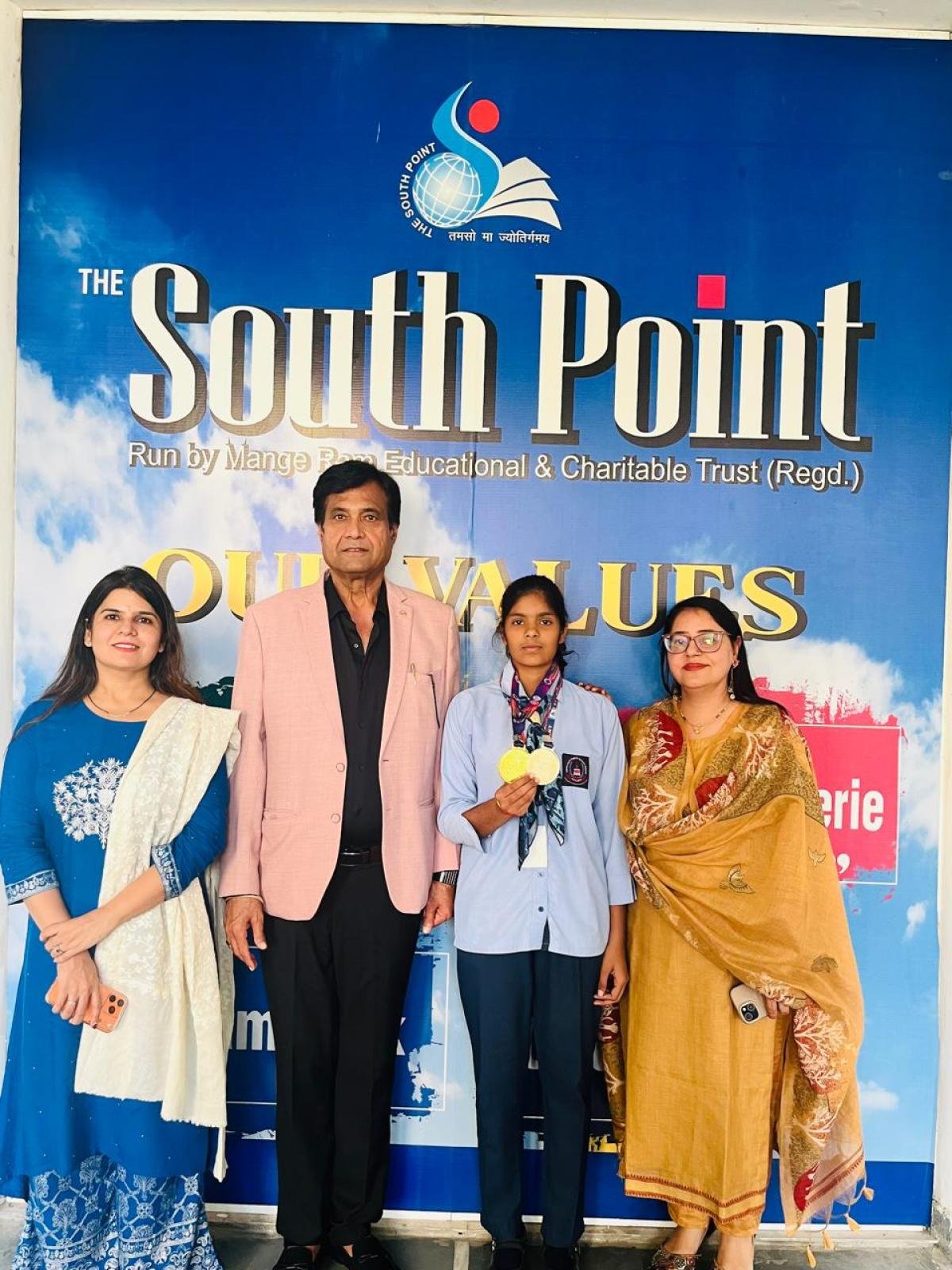 साउथ पॉइंट स्कूल की नौवीं कक्षा के मैरिगोल्ड सेक्शन की छात्रा दिव्या ने अपनी प्रतिभा का लोहा मनवाते हुए जूनियर नेशनल डोजबॉल चैंपियनशिप में दोहरी सफलता हासिल की है। दिव्या ने मिक्स कैटेगरी में गोल्ड मेडल और गर्ल्स कैटेगरी में सिल्वर मेडल जीतकर साउथ पॉइंट संस्थान व जिले का नाम राष्ट्रीय स्तर पर रोशन किया है। साउथ पॉइंट कॉलेज ऑफ इंस्टीट्यूशंस के चेयरमैन दिलबाग सिंह खत्री ने पदक विजेता को बधाई दी और अन्य विद्यार्थियों को किसी न किसी खेल में प्रतिभागिता करने के लिए प्रेरित किया।